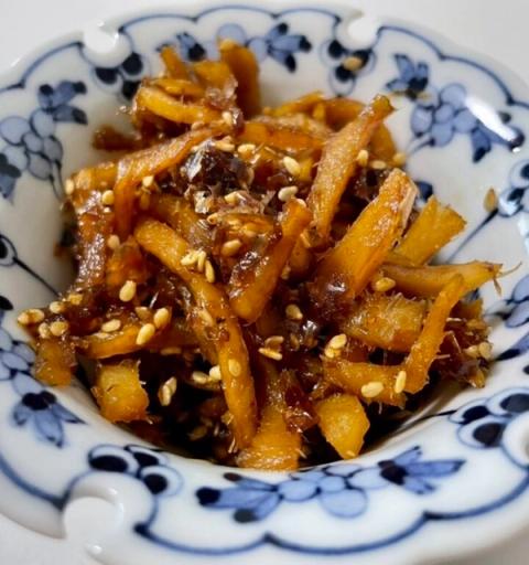 신선한 생강을 간장, 미림, 사케에 졸이면 강한 매운맛이 부드러워지며 감칠맛 나고 살짝 달콤한 맛으로 변합니다. 가쓰오부시와 참깨를 더하면 여러 겹의 감칠맛과 향이 생겨 깊고 편안한 맛의 요리가 됩니다.