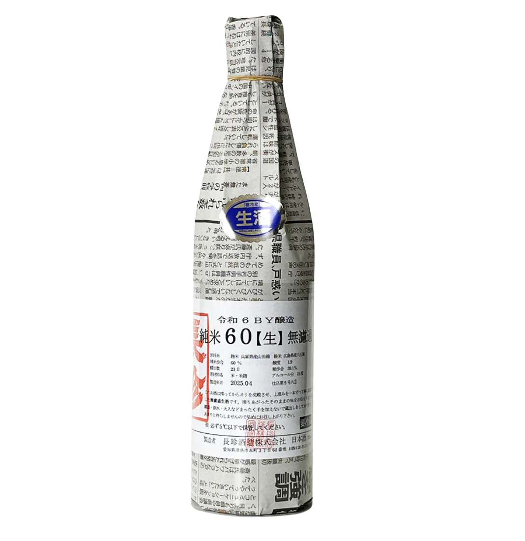Shimbunshi Murokanamazake Junmairokuju Hattanishiki (Junmai) by Chouchin Shuzo Co.,Ltd. Crafted with Yamada Nishiki, Hattan Nishiki polished to 60%, it features a balanced profile. Expect clean aromatics and a smooth finish suited for casual sipping or thoughtful pairings.
